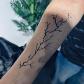 A Thunderbolt semi-permanent tattoo set featuring bold, electric designs. Lasts up to 15 days and reusable up to 6 times per sheet — multiple design variations included.